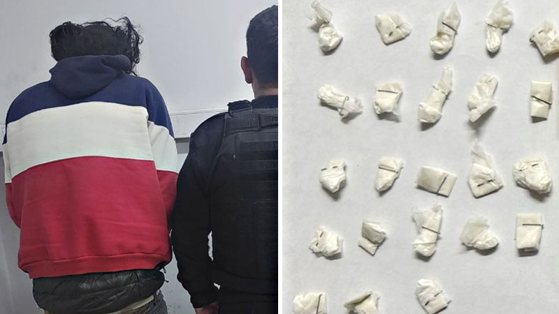 Durante una requisa, el sujeto se quitó un gorro de lana que llevaba puesto y los uniformados encontraron una bolsa con 23 envoltorios de cocaína oculta entre sus rastas.