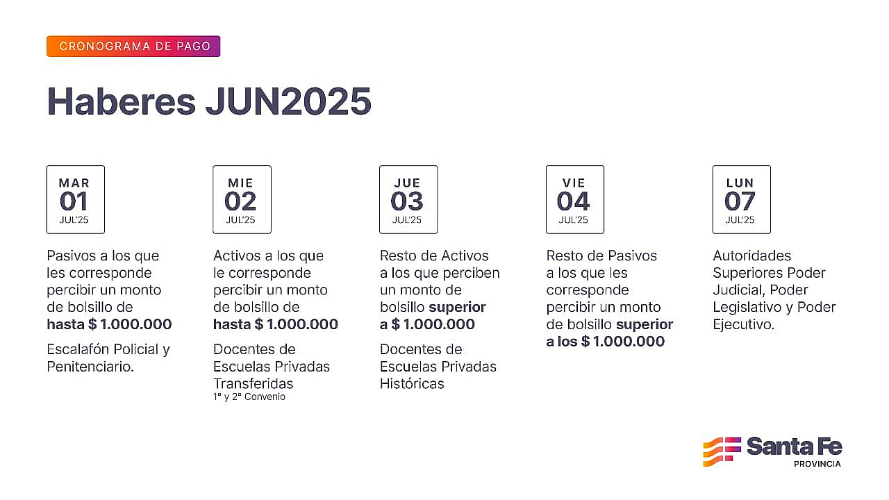 El Gobierno de Santa Fe publicó el cronograma de pago de haberes de junio para los trabajadores provinciales