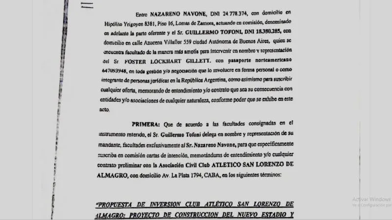 Por intermedio del exdirector de Desarrollo del “Ciclón”, Nazareno Navone, se formalizó un preacuerdo que acercó a Tofoni y al magnate estadounidense con el objetivo de privatizar la institución de Boedo en 2024, según el documento al que tuvo acceso Doble Amarilla. Dentro de los puntos detallados aparece el desembolso de USD 612.000.000 para la construcción de un nuevo estadio en avenida La Plata; una inversión millonaria en todas las áreas a cambio de los derechos de TV, tierras, venta de jugadores y rendimientos económicos del plantel.