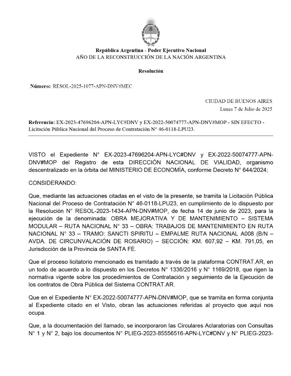 La anulación alcanza también a la Ruta 178, entre Las Rosas y el empalme con la 33. Ambas obras ya tenían adjudicatarios confirmados -la UTE compuesta por Edeca S.A. y Rava S.A.- y se encontraban en condiciones administrativas para su inicio. Sin embargo, el Gobierno nacional argumentó, con fundamentos considerados “irrisorios” desde el Gobierno santafesino, que los plazos habían caducado, y utilizó una cláusula de los pliegos para frenar las ejecuciones sin consecuencias legales.