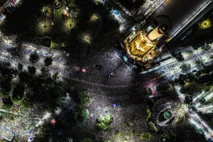 El apagón de una puesta de luces a escala urbana y en diálogo con la dimensión de semejante montaje y escenario, con más de una veintena de canciones en el haber, con el Propileo del Monumento teñido de un rojo furioso (uno de los colores predominantes de la noche) y el mural del Pasaje Juramento con el retrato de Belgrano como testigo de semejante regalo de Páez a su público en el lugar que rinde tributo a la bandera, el de Fito con Rosario se trató de un encuentro necesario, casi imprescindible, de comunidad, de un tiempo compartido en paz y particularmente dedicado al amor en sus distintas formas, en medio del reinado del odio, la indiferencia y la violencia.
