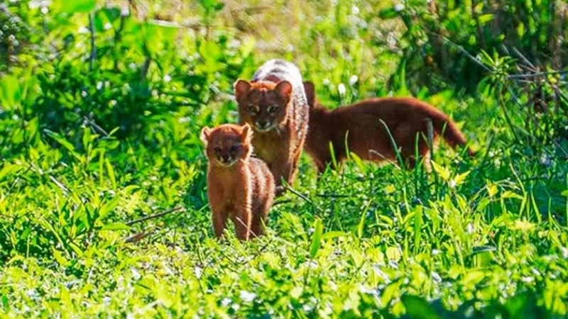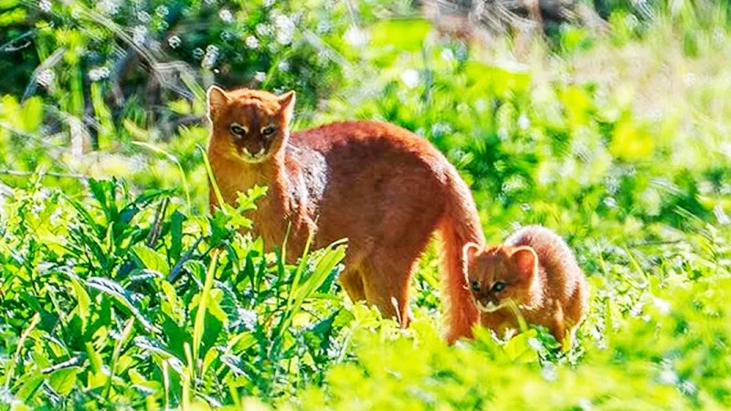 El fotógrafo Alan Feyt logró captar un momento excepcional en la periferia de la capital entrerriana: una hembra de yaguarundí con dos crías.