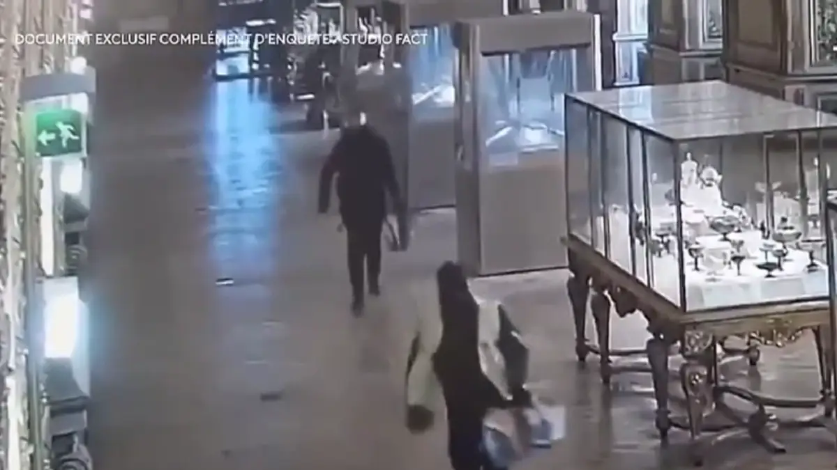 Las imágenes difundidas por los programas Sept à Huit (TF1) y Complément d’enquête (France TV) muestran el momento exacto en que los asaltantes irrumpieron en la Galería de Apolo, ubicada en el primer piso del museo. Allí se observa cómo se dirigieron directamente a vitrinas específicas, mientras los guardias, visiblemente confundidos, dudaban en intervenir.