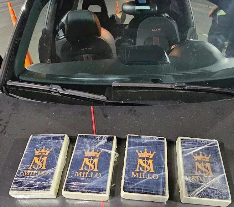 Durante la entrevista, el conductor mostró un marcado estado de nerviosismo que alertó a los uniformados. Al realizar una inspección ocular sobre el vehículo, los efectivos hallaron debajo del asiento del acompañante una bolsa de supermercado que contenía cuatro «ladrillos» de una sustancia pulverulenta similar a la cocaína, cuidadosamente envueltos en papel film.
