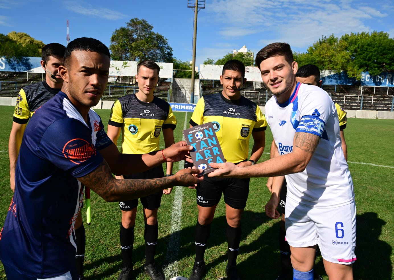A través del capitán del equipo, Alexis Schmidt, se realizó la entrega de un ejemplar de Puro Fútbol, recopilación de todos los cuentos sobre el deporte rey escritos por Roberto Fontanarrosa editado recientemente por Planeta.