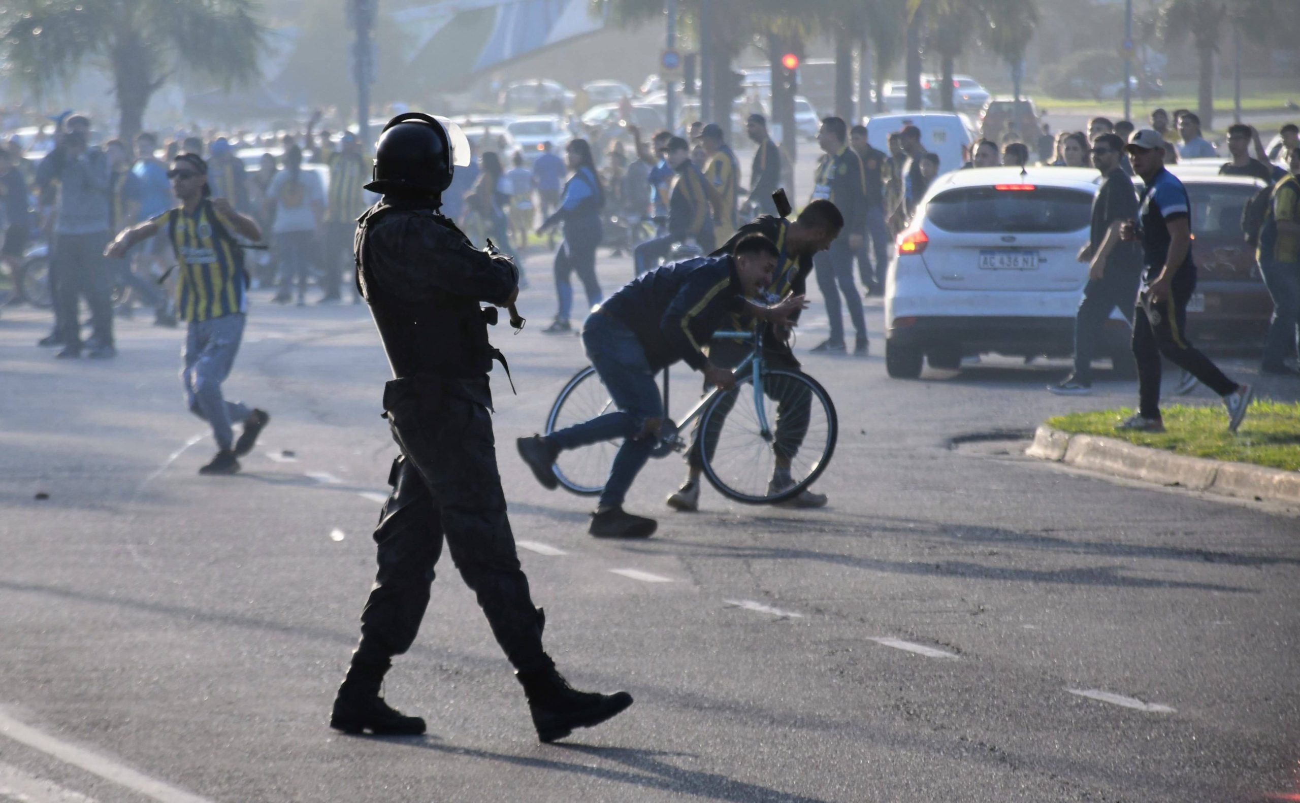 Los disturbios se iniciaron cuando el colectivo que trasladaba el plantel pasó por el Parque Alem y los uniformados comenzaron a lanzar balas de goma. Una vez el accionar policial quedó en el ojo de la tormenta.