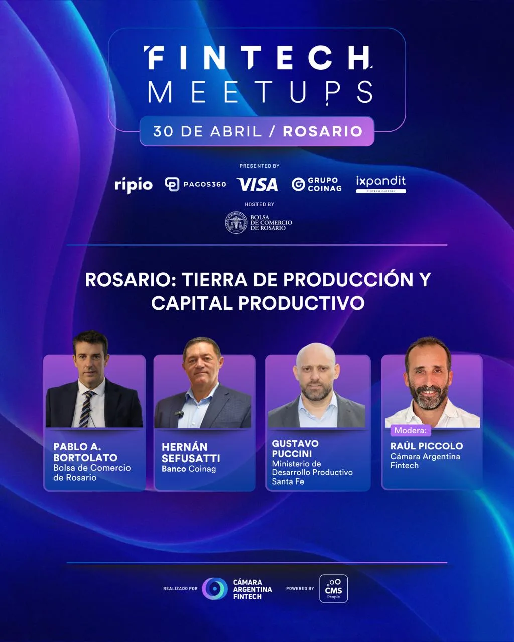 El panel reunirá además a referentes del ámbito público y privado, como Pablo A. Bortolato (Bolsa de Comercio de Rosario) y Gustavo Puccini (Ministerio de Desarrollo Productivo de Santa Fe), en una conversación moderada por Raúl Piccolo, de la Cámara Argentina Fintech.
