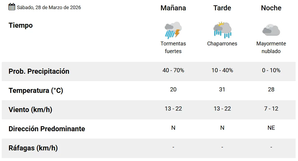 El pronóstico oficial anuncia alta probabilidad de tormentas fuertes en lo que queda de la mañana de este sábado. Durante la tarde sigue feo: con chances de chaparrones aislados y sin fresco. La máxima estimada es de 31 grados.