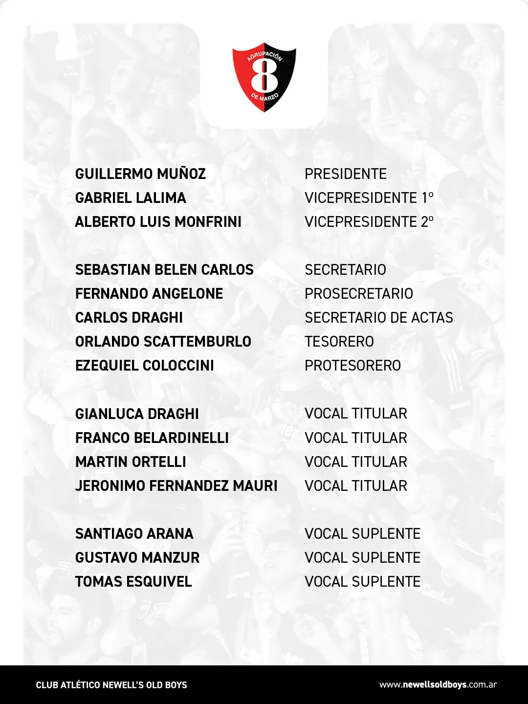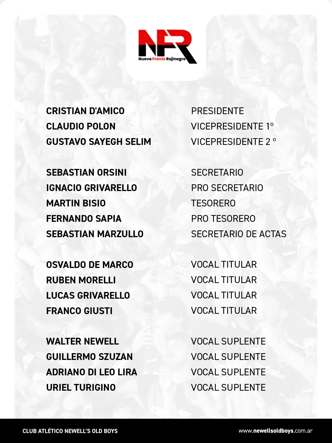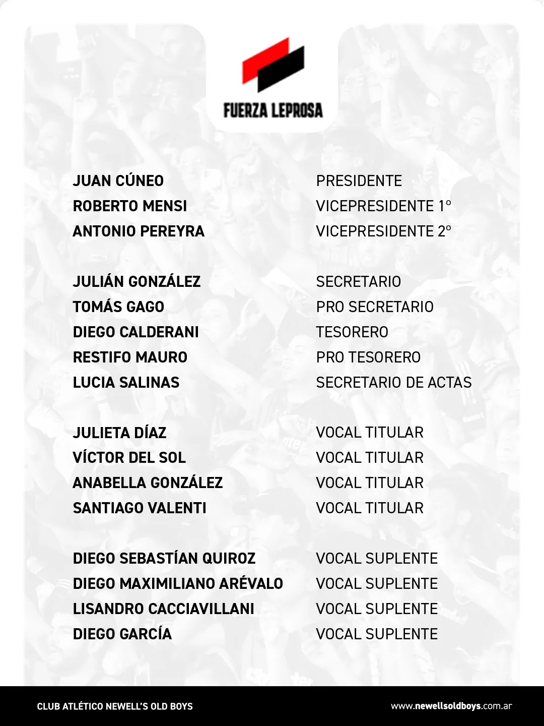 Nuevo Frente Rojinegro mostró a Claudio Vivas junto a los hermanos Cristian y Luciano Vella como carta fuerte. Y Fuerza Leprosa apostó por Roberto Battion, alguien que no tiene raíces leprosas, aunque les sumó a Germán Ré, Julián Maidana y Bombón Rosada. Y 8 de Marzo nombró al profe Salorio, aunque no hubo ninguna palabra del formador de juveniles confirmando este apoyo. También mencionó a Yaya Rossi en inferiores.