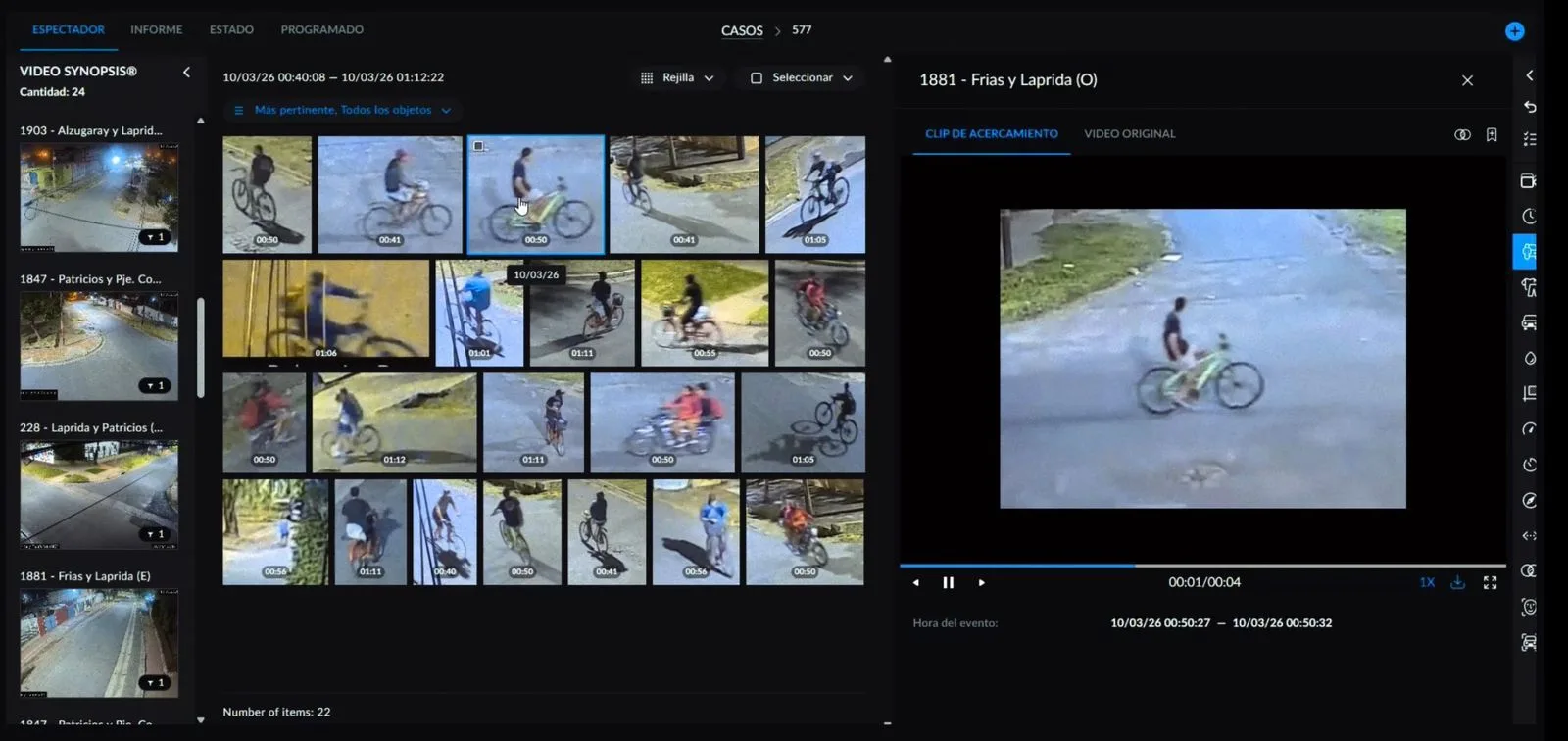 A partir de allí, el sistema comenzó a enlazar imágenes de diferentes cámaras. En cuestión de segundos, el mismo ciclista fue detectado pasando por Frías y Laprida y luego por Alzugaray y Laprida, siempre en dirección sur.