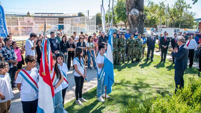 El intendente Pablo Javkin encabezó este miércoles 25 de marzo el acto de inauguración de las obras de renovación de la plaza Pinocho y de la plazoleta Granaderos Reservistas (Av. Casiano Casas y Sorrento, Distrito Norte), dos espacios incluidos en un mismo proyecto que nació de la votación de vecinas y vecinos en el Presupuesto Participativo. La jornada, que incluyó juegos, música y actividades para todas las edades, contó con la participación de alumnas y alumnos de 7° de la Escuela Leopoldo Herrera y miembros de la Asociación Granaderos Reservistas de la República Argentina, quienes vistieron sus uniformes.