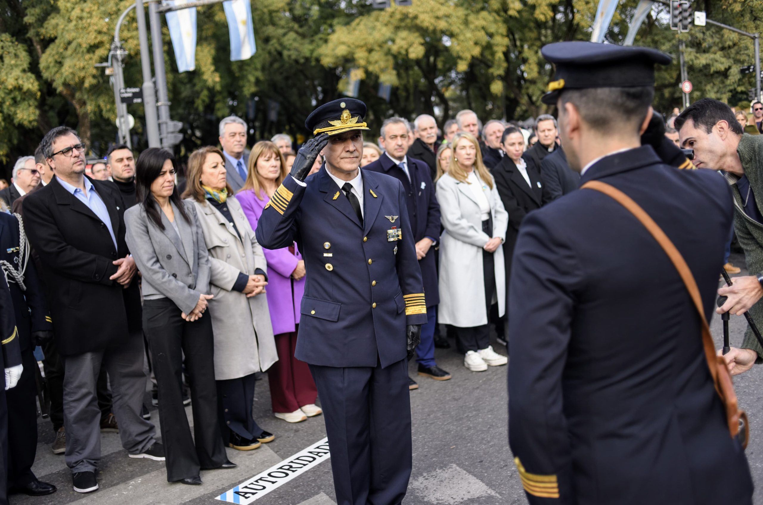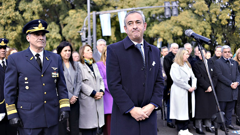 Durante el encuentro al pie del Monumento a Belgrano, que se inició con el izamiento de la enseña patria, la entonación del Himno Nacional y una invocación religiosa, el mandatario estuvo acompañado por funcionarios provinciales e integrantes de su gabinete, legisladores nacionales, provinciales y locales; miembros de la Mesa Interreligiosa, de las Fuerzas Armadas, de seguridad y policiales; autoridades de la UNR, el cuerpo consular, representantes de colectividades, credos y asociaciones y ex combatientes de Malvinas junto a vecinas y vecinos.