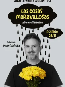 Las cosas maravillosas, obra teatral protagonizada por Juan Pablo Geretto, bajo la dirección de Mey Scápola, se presentará en Rosario este sábado 29 de noviembre, a partir de las 21.30, en el teatro Broadway (San Lorenzo 1223), en cuya boletería donde se venden las entradas, o bien de forma online ACÁ.