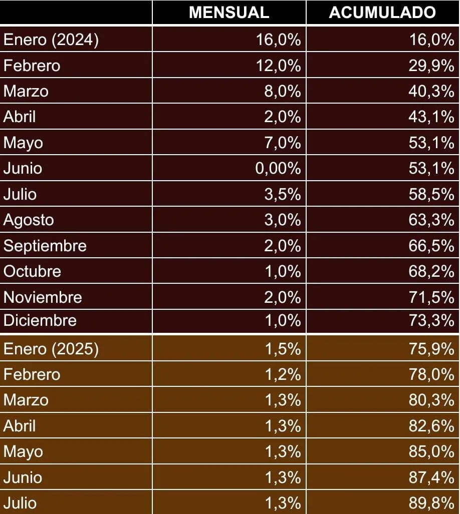 Como consecuencia de la medida, los funcionarios alcanzados comenzarán a percibir desde este enero el porcentaje acumulado de aumentos salariales negociados por la Comisión Negociadora del Convenio Colectivo de Trabajo General para la Administración Pública Nacional. Se trata de convenios aprobados en diferentes fechas entre enero de 2024 y julio de 2025. Esto es nada menos que casi un 90%.