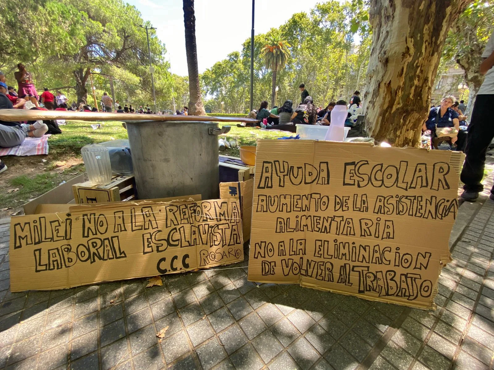 La Corriente Clasista y Combativa inició este jueves un acampe con la instalación de ollas populares en la plaza San Martín, frente a la sede de la Gobernación, para hacer oir varios reclamos. Entre ellos, la continuidad de los planes Volver al Trabajo que el Gobierno nacional anunció que dará de baja, ayuda alimentaria para los comedores barriales que sostienen y asistencia para la compra de útiles escolares por parte de la provincia de Santa Fe. Referentes de la organización social adelantaron que si no obtienen respuestas a sus pedidos seguirán en el espacio de Moreno y Santa Fe.