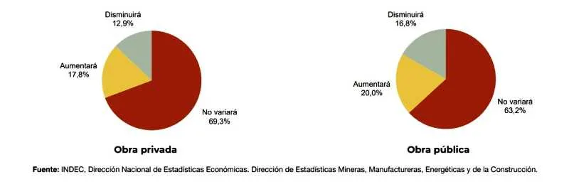 En tanto, entre aquellos que se dedican mayormente a la obra pública, el 20% estimó que habrá una reacción, frente a un 16,8% que anticipó una baja, mientras que el 63,2% restante no previó mayores cambios.