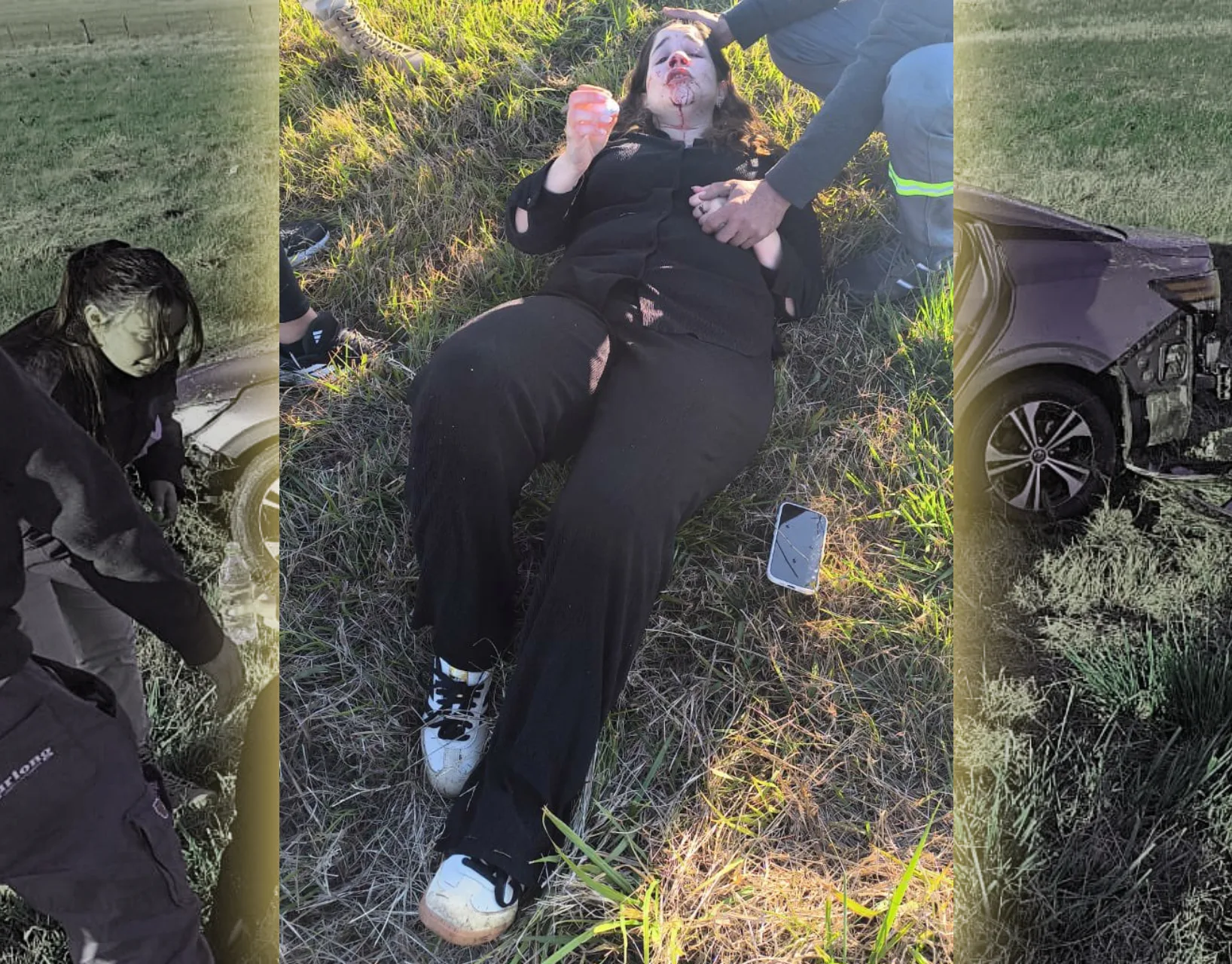 Rocío y su padre quedaron con heridas, pero no se gravedad. «Se durmió el chofer, despistó, nos comimos una zanja y de milagro estamos vivos”, relató el también exconcejal de Rosario.