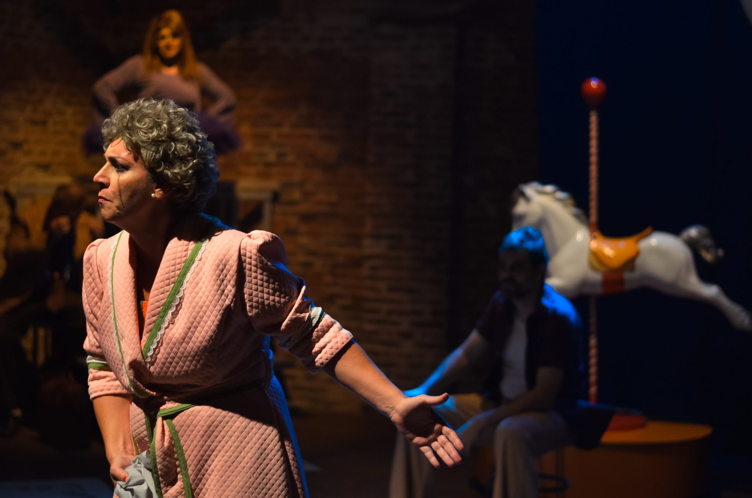Desafiante trabajar en un mismo espacio escénico que late en su totalidad las escenas más pequeñas, mientras todos los personajes sostienen la ficción como gran objetivo, otro acierto de la puesta es la proximidad del público casi conviviendo con ese espacio ensoñado que, sin embargo, deja entrever que la propuesta resistiría un montaje más a la italiana donde la perspectiva que habilita cierta distancia permitiría ver esa totalidad como gran contrapunto frente al relato.