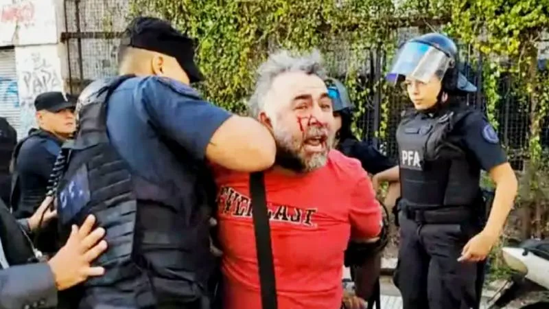 “Cuando intento retroceder, no pude porque me estaban pisando el rollo de cable. Les dije que tenía el rollo y que no podía retroceder, siguen atropellándome y siento el gas pimienta, golpes y caigo”, contó el trabajador de prensa al salir del Hospital Ramos Mejía.