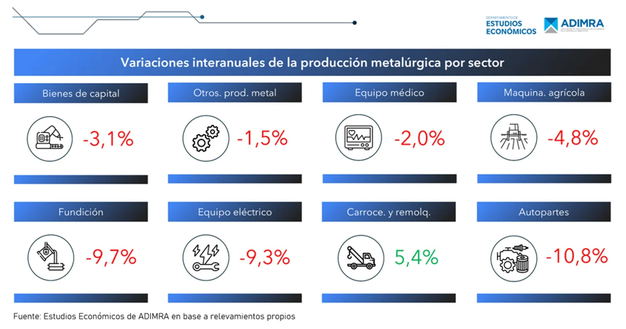 La actividad metalúrgica en septiembre cayó 5,2 en forma interanual y 1,1% respecto al mes anterior, según un informe sectorial.