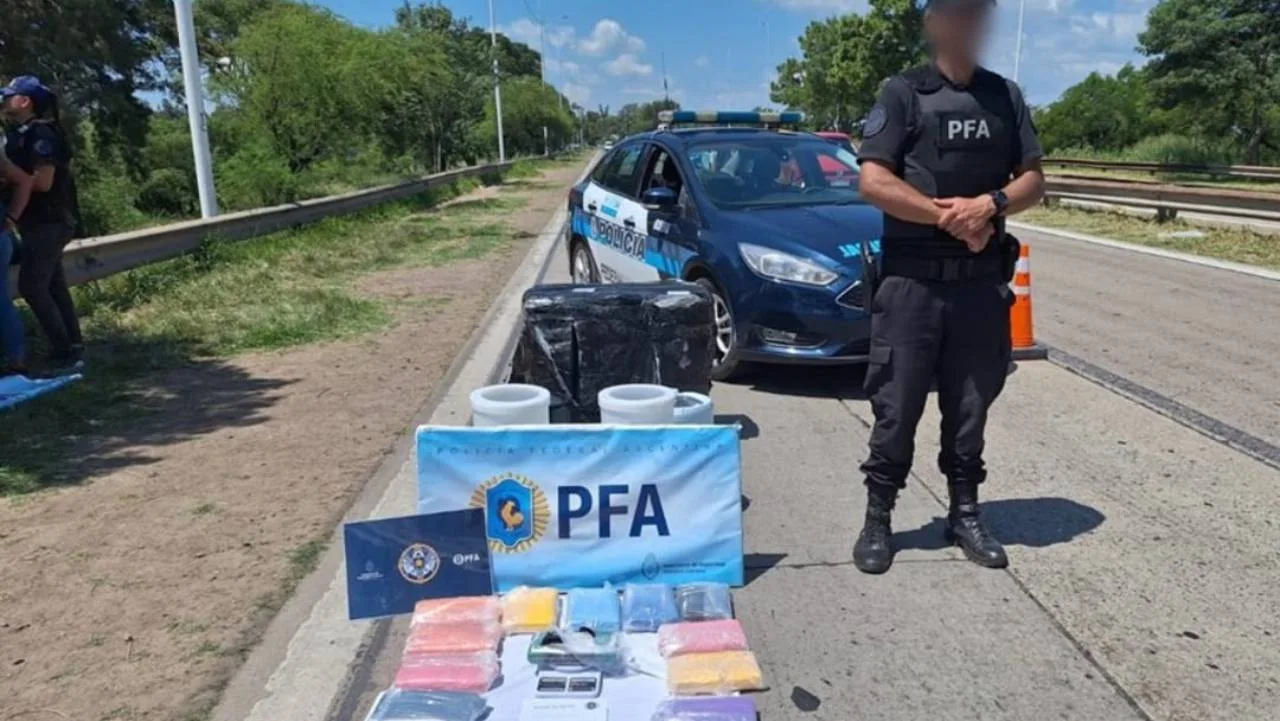 En ese hecho, los ocupantes de un Renault Logan intentaron descartar bultos mientras huían. Al ser inspeccionados por el can Zeus de la Policía Federal, descubrieron que transportaban ladrillos de cocaína compactada dentro de electrodomésticos.