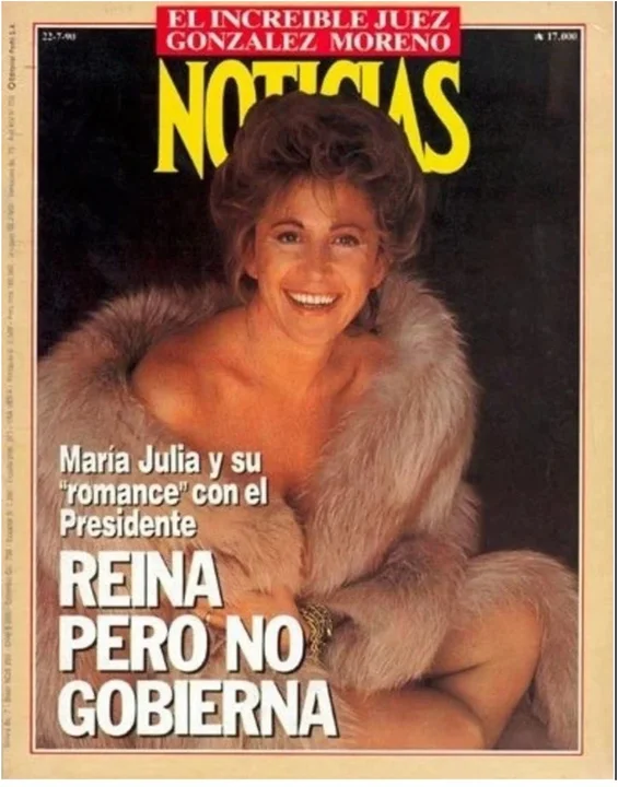 La tapa original, publicada en julio de 1990, mostraba a la entonces funcionaria menemista con un elegante tapado de piel —prestado por Graciela Borges— en el marco de una fiesta en Las Leñas. Según reconstruyó Perfil.com, la escena fue espontánea: Alsogaray, risueña y poderosa, aceptó posar tras un cumplido de Susana Giménez y ante la cámara de Osvaldo Dubini. La imagen se convirtió en una de las portadas más recordadas de Noticias, que disparó ventas y fijó una postal para la posteridad de la década menemista.
