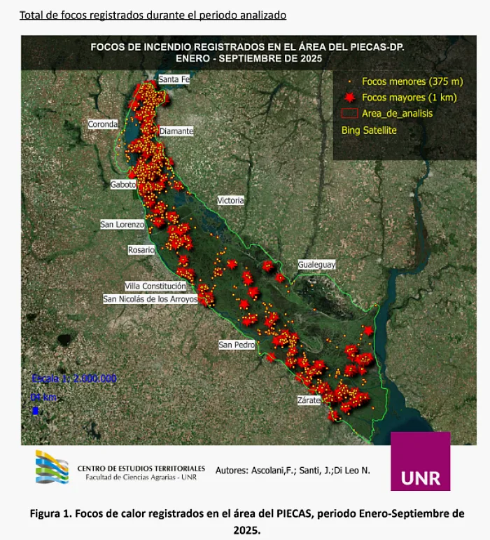 En 9 primeros meses de este 2025, de acuerdo al análisis de la UNR, la superficie afectada ya alcanza aproximadamente al 42% de la arrasada hace siete años.