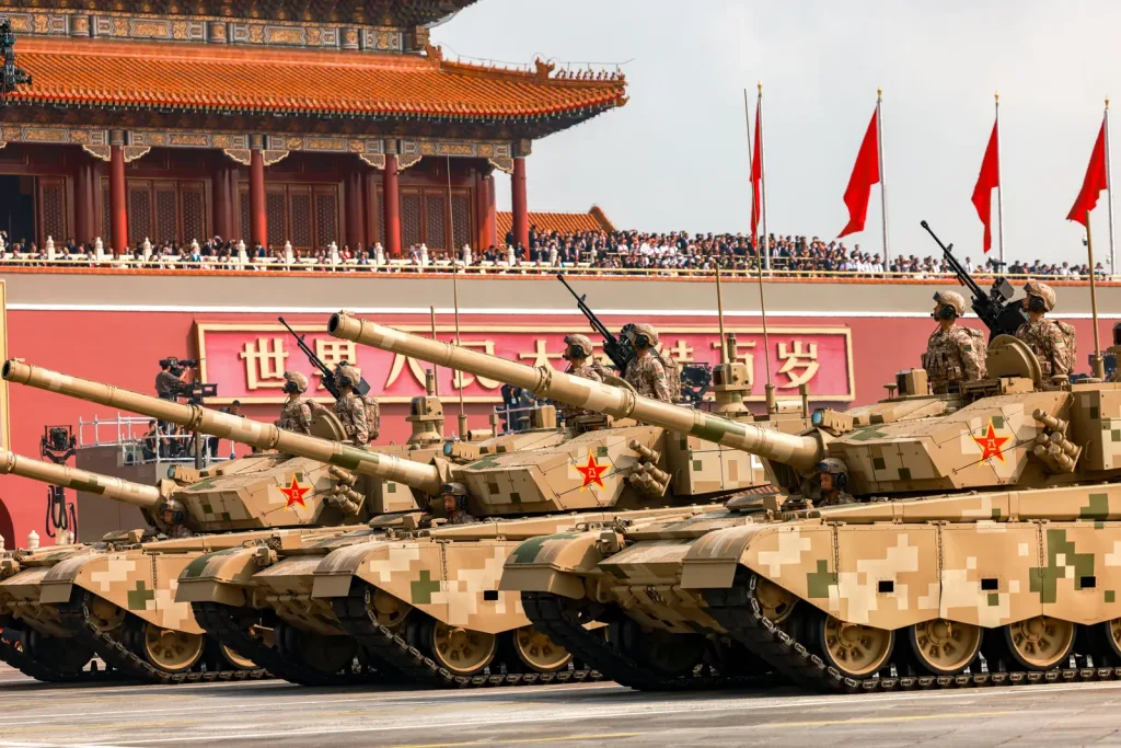 Uno de los primeros vehículos en desfilar fue el nuevo tanque Tipo 99B. Se trata de la última variante de la tercera generación de tanques chinos, la serie Tipo 99, considerada el buque insignia de las fuerzas acorazadas del Ejército Popular de Liberación. El último modelo cuenta con mejoras en los sistemas de protección activa, blindaje compuesto y electrónica de a bordo diseñadas para aumentar la capacidad de supervivencia y la eficacia operativa en el campo de batalla moderno.