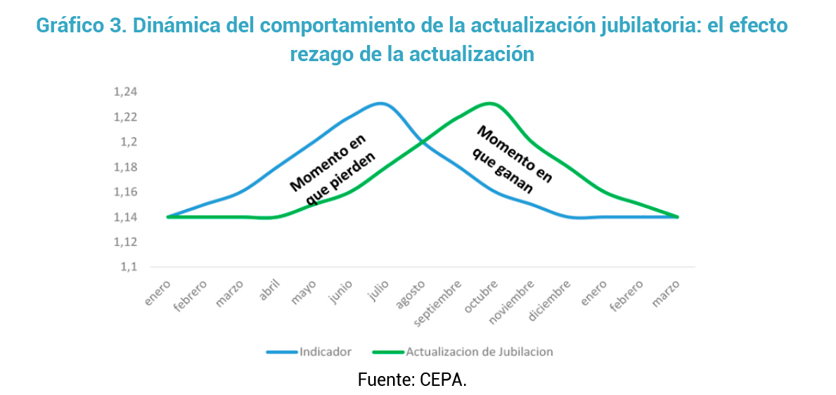 El informe del CEPA hace foco en el momento decidido por el oficialismo para modificar la fórmula de actualización automática. Fue justo cuando la inflación comenzaba a desacelerarse, cuando el esquema derogado comenzaba a producir una mejora del poder adquisitivo sobre el aumento de precios.
