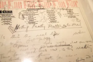 Llama la atención que todos estos manuscritos son hojas con el membrete de Britisth Midlands, una aerolínea hoy desaparecida, y están escritas de forma desordenada, a veces por encima de letras o de calendarios impresos en las hojas.
