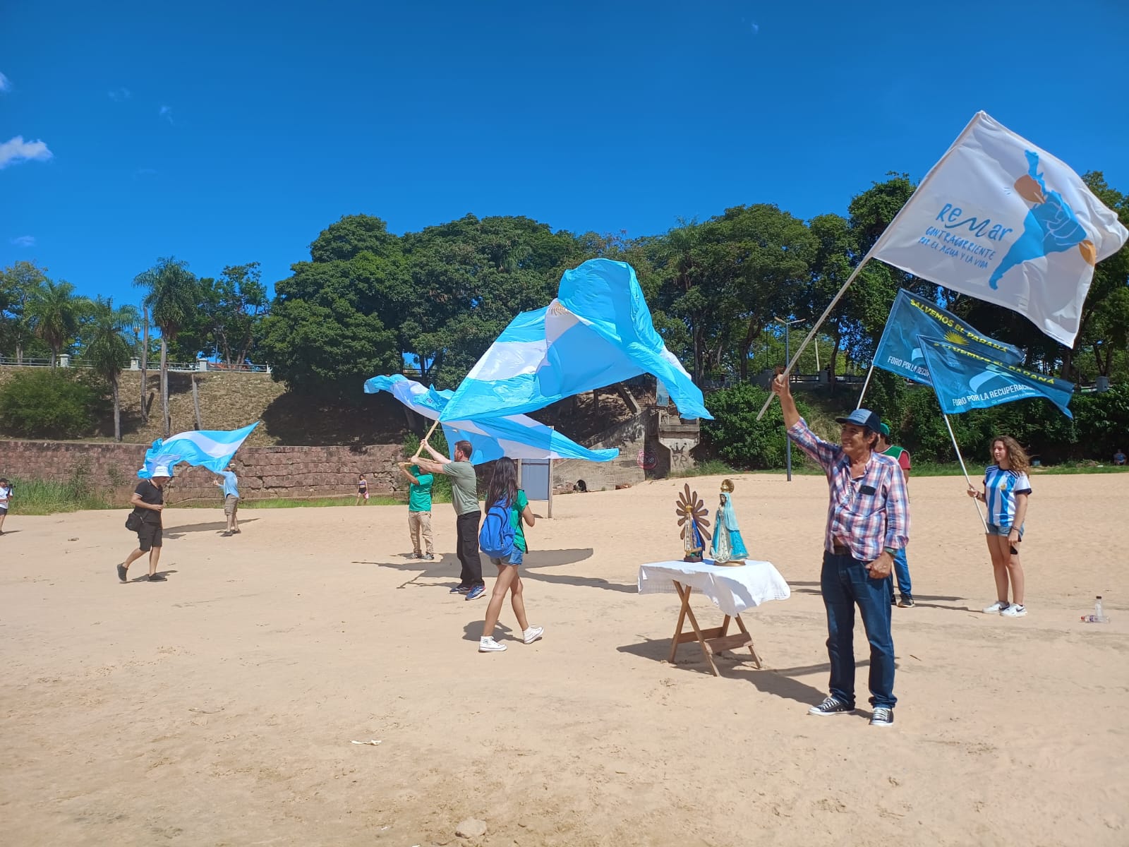 Por la tarde, los remeros llegaron a la playa “Islas Malvinas” de la ciudad de Corrientes donde fueron recibidos por organizaciones de trabajadores, ambientalistas, ex combatientes, deportistas, trabajadores de la economía Social, referentes locales de la cultura, movimientos sociales y vecinos y vecinas de Corrientes. Estuvo dando la bienvenida también el cura Carlitos Gómez, de Curas de Opción por los Pobres (OPP), quien bendijo a las embarcaciones y a los remeros junto a la imagen de la Virgen de Itatí y la Virgen de Luján.