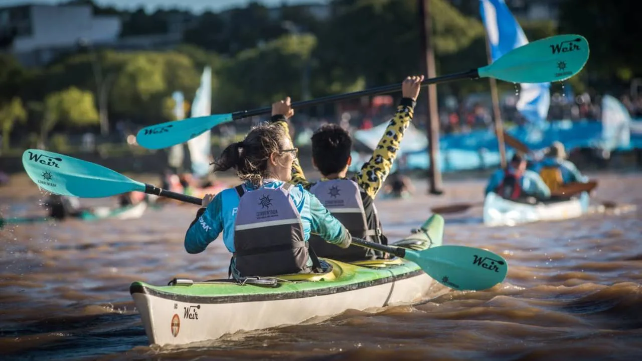 Los protagonistas de la “patriada” que en firme defensa del Paraná “ponen el cuerpo”, arribaron en caravana en sus respectivas embarcaciones junto a un desfile de remeros y kayakistas que se fueron sumando a cada paso a lo largo y ancho del extenso recorrido.