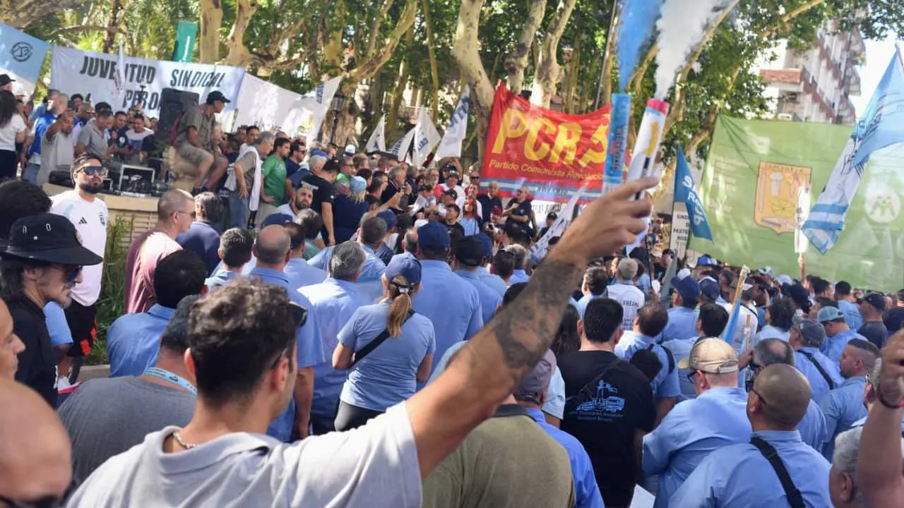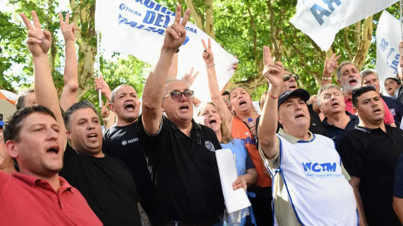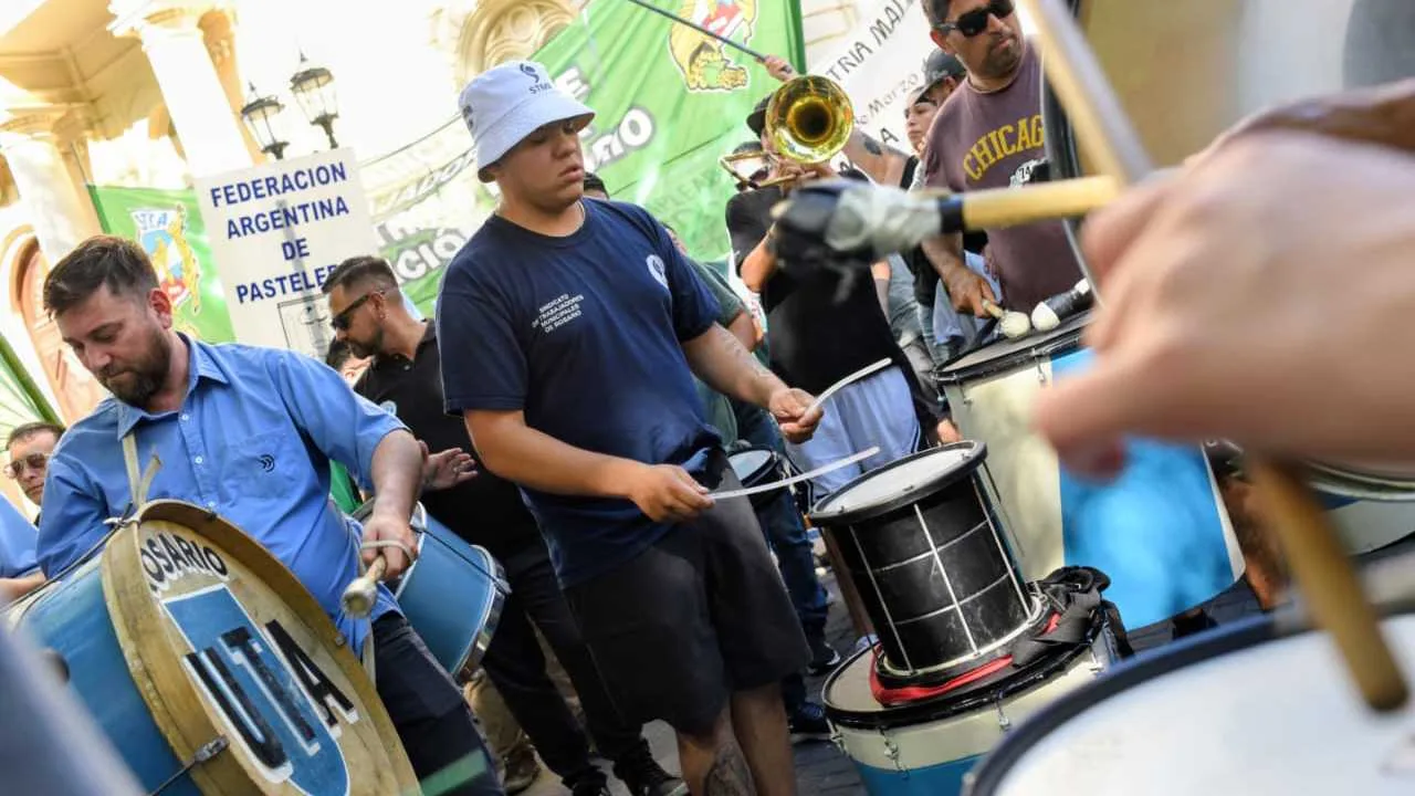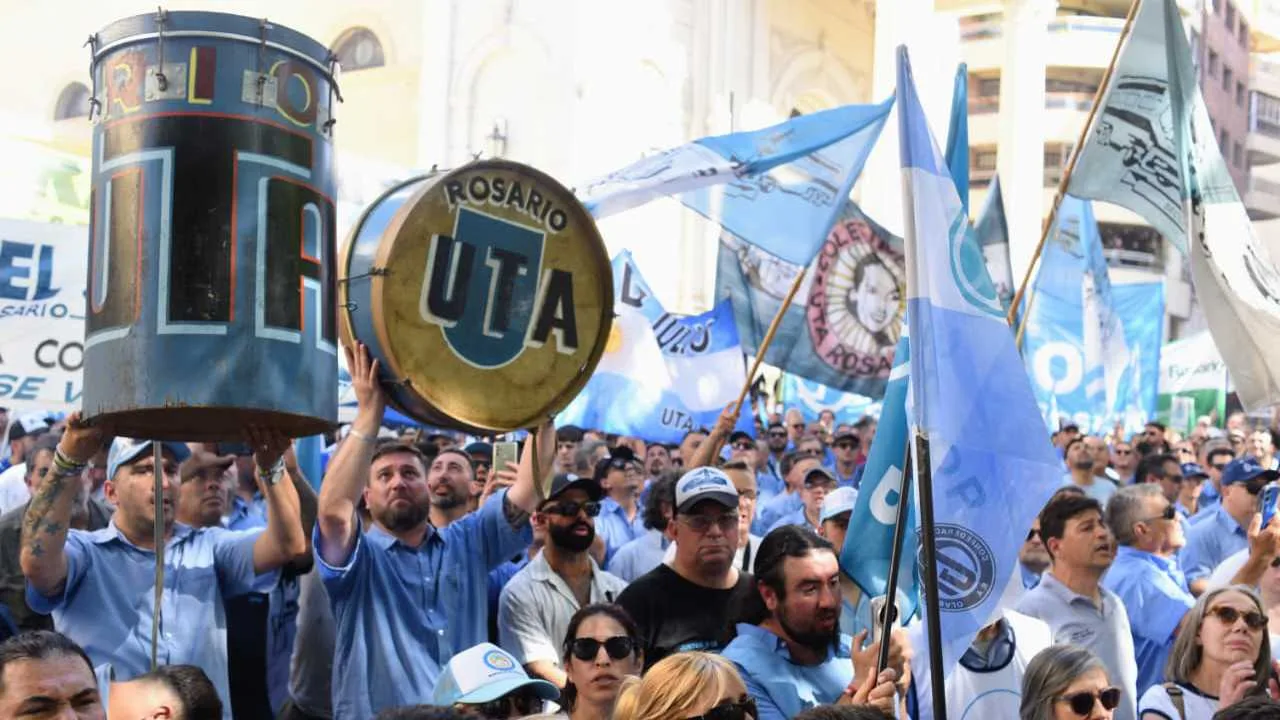 La jornada de lucha en Rosario arrancó temprano con una multitudinaria convocatoria frente a la Iglesia San Cayetano, impulsada por gremios del transporte.