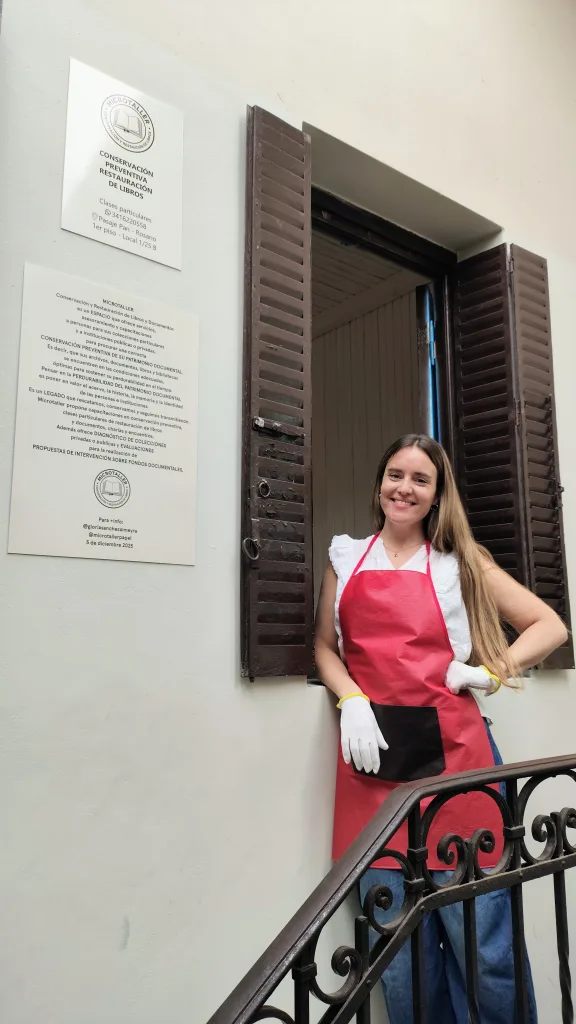 En Rosario tiene a su mentora, Susana Medén, una reconocida conservadora y restauradora argentina especializada en bienes en soporte papel, con trayectoria nacional e internacional.