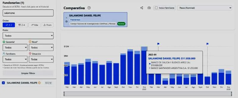 Pero otro de los que figura en el registro es Daniel Salamone, el presidente del CONICET, en una lista que tiene a centenares de funcionarios, aunque sin préstamos multimillonarios.