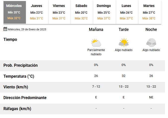 Mitad de semana y con buen tiempo en la ciudad. El Servicio Meteorológico Nacional (SMN) anunció para este 29 de enero una temperatura mínima de 20 °C y una máxima que rondará en los 32 °C.