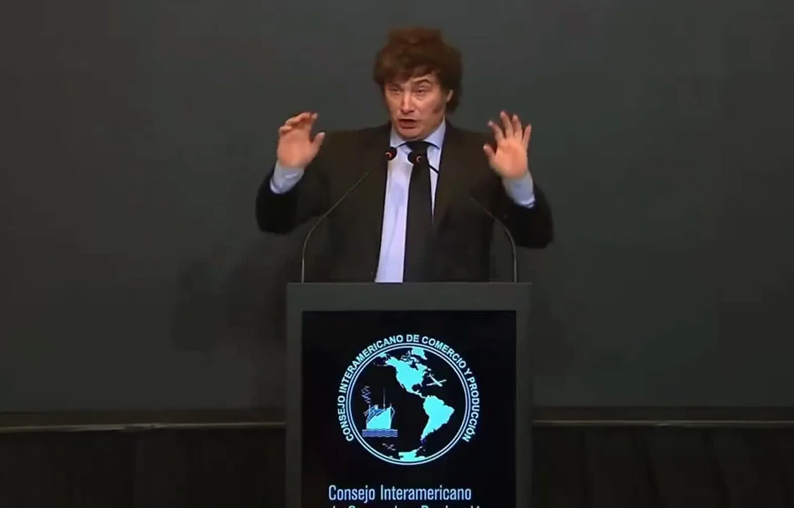 Huir hacia adelante. El presidente Javier Milei aprovechó el mediodía de este jueves el almuerzo del Consejo Interamericano de Comercio y Producción (CICyP) para enfocar su disertación en los incidentes durante la actividad de campaña que protagonizó el pasado miércoles en Lomas de Zamora. Conectó ese hecho con lo que calificó como «burdas operaciones difamadoras» en alusión a los audios filtrados del extitular de ANDIS Diego Spagnuolo.