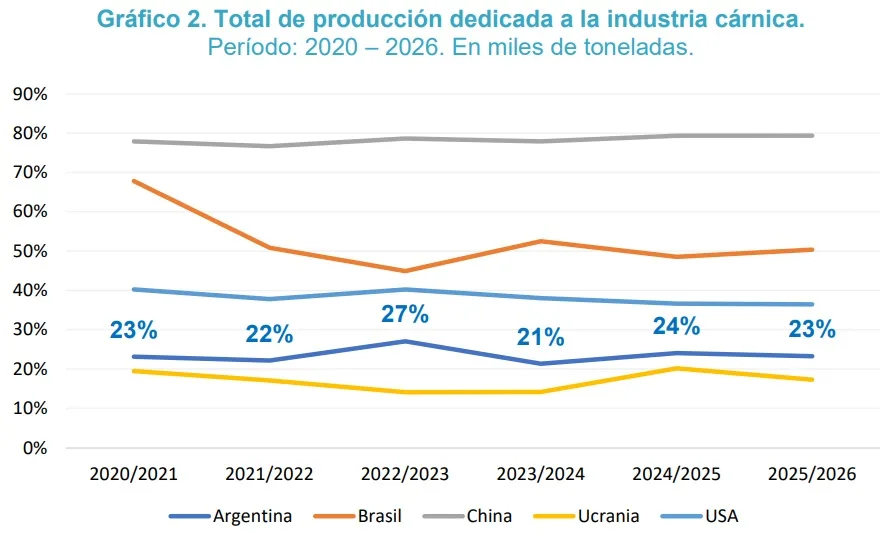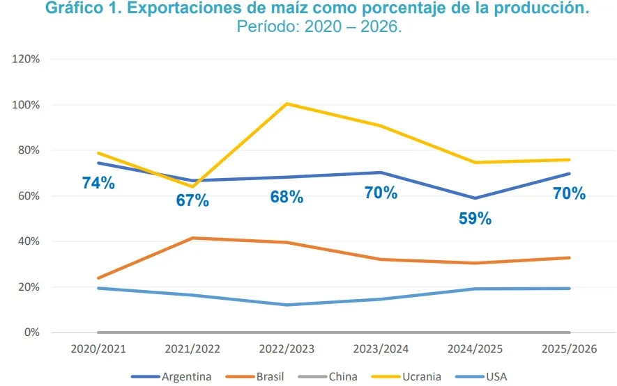 Según un informe del Centro de Economía Política Argentina (Cepa), en base a datos del Departamento de Agricultura de EE.UU., mientras que en Argentina cerca del 70% del maíz producido se destina, en promedio, a la exportación directa, en el resto de los principales países productores el destino del cereal presenta un perfil marcadamente distinto. En estos casos, el maíz se orienta prioritariamente a su integración en la industria cárnica y a la producción de energía, consolidando esquemas de mayor agregado de valor y encadenamientos productivos internos.