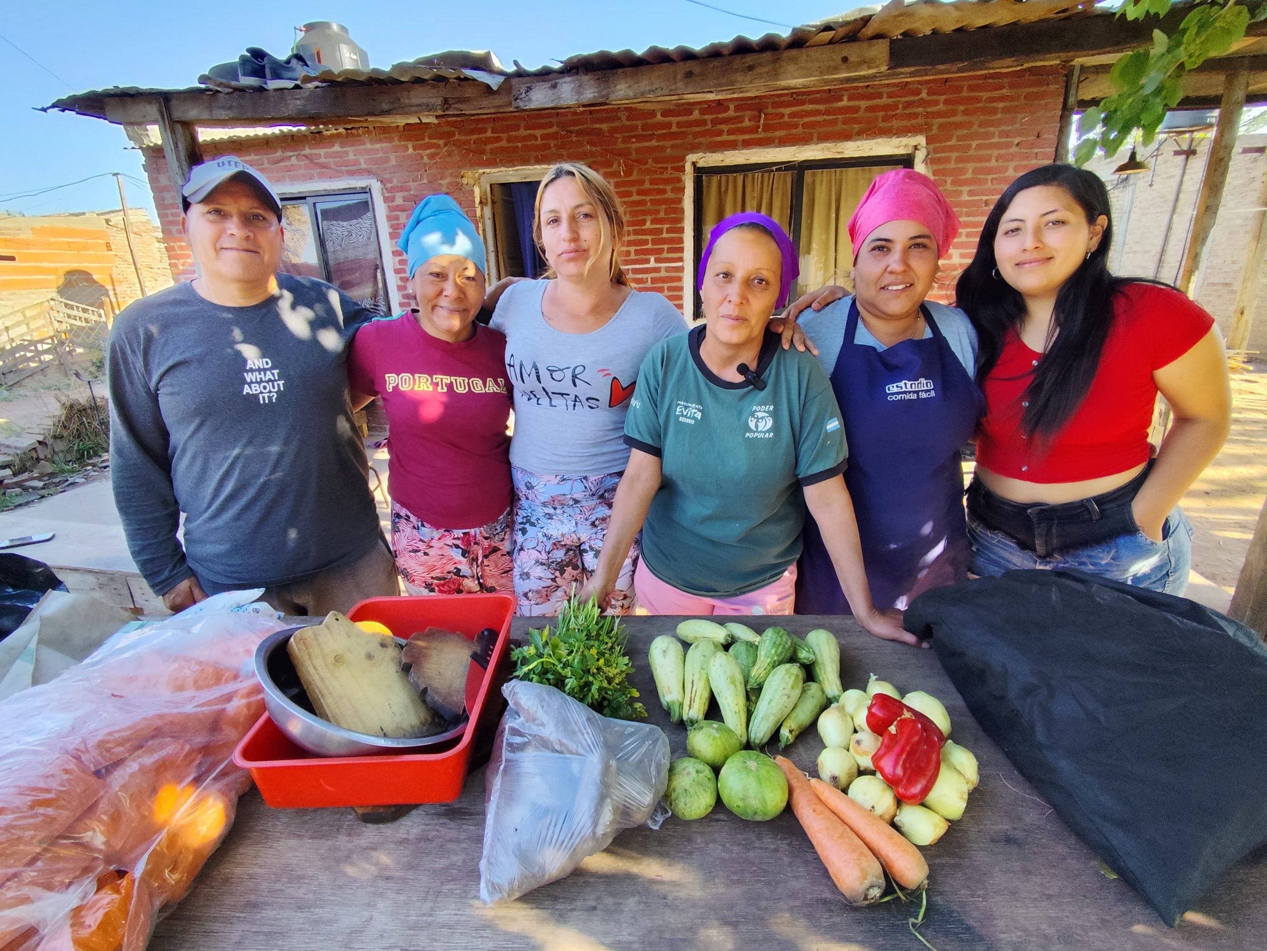 Al comedor Poder Popular lo llevan adelante sus fundadoras junto a Roxana, Daniela, Verónica, Gimena y Ramón. Se las ingenian para conseguir los alimentos, a veces por la solidaridad de los vecinos, de los comercios, de otros espacios y de los referentes territoriales del Movimiento Evita al que pertenecen, pero muchas veces están todos en la misma situación de desabastecimiento.