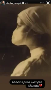 El posteo de la querida y talentosa actriz con un corazón roto tiene como fondo la imagen antigua de Quatrocchi con su cofia y barbijo de enfermera, profesión que ejerció desde temprana edad y por muchos años. En palabras de su propia hija, había contado hace tiempo que trabajaba los fines de semana, turnos nocturnos y muchos feriados.