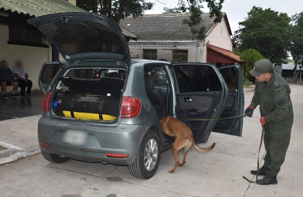 Al momento de la inspección, los funcionarios fueron alertados por el perro detector de narcóticos, que marcó la posible presencia de estupefaciente dentro del vehículo.