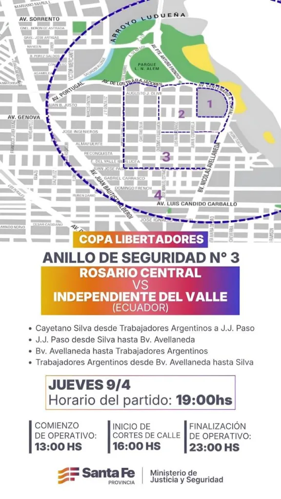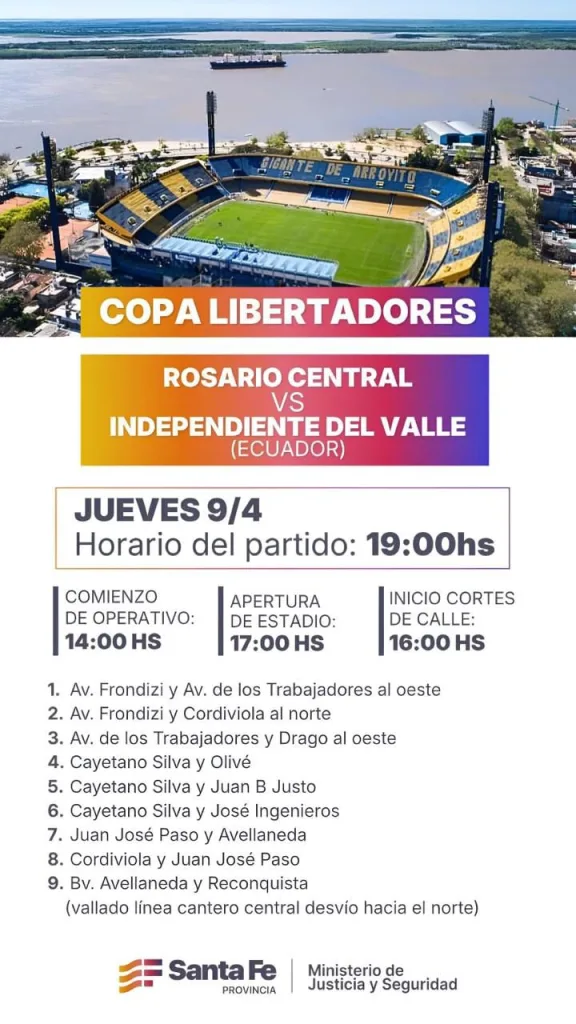 El Gigante de Arroyito se prepara para una nueva cita continental. Rosario Central enfrenta a Independiente del Valle por la Copa Libertadores y, ante la expectativa por el encuentro, la provincia de Santa Fe pondrá en marcha un exhaustivo operativo de seguridad que alterará la rutina habitual del barrio Arroyito durante la tarde y noche de este jueves.