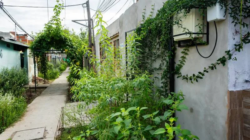 También se hicieron talleres participativos para realizar los diseños de los pasillos y para enseñar a hacer compost. Además, se llevó adelante una plantación de árboles en veredas que constituyen el perímetro de cada manzana y ejecución de infraestructura verde en pérgolas, aleros, espalderas, canteros y macetas que permitieron la plantación de especies vegetales nativas, y se capacitó a vecinas y vecinos para que hagan el mantenimiento de las plantas.