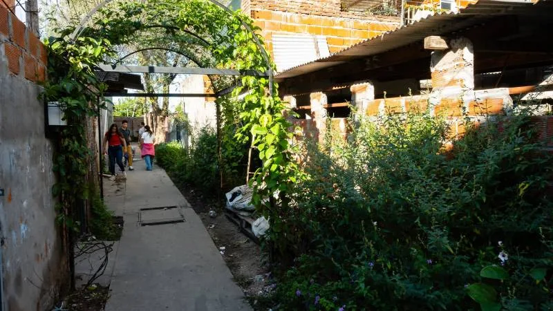 “En estos dos años, a partir del financiamiento que nos otorgaron, pudimos instalar infraestructura verde en diferentes pasillos de barrio Moreno; esta infraestructura verde nos permite por un lado tener más superficie absorbente y por otro lado absorber el calor, de manera que mejora el confort térmico de estos espacios de uso público dentro de los pasillos, pero también de algunas viviendas donde se instaló esta infraestructura”, agregó el secretario de Ambiente y Espacio Público, Luciano Marelli.