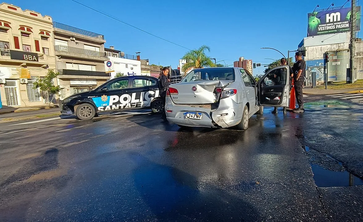 Un móvil de la Policía santafesina chocó en la mañana de este martes violentamente contra un auto que realizaba un viaje contratado desde la plataforma Uber. La pasajera iba hasta su trabajo. El siniestro fue en avenida Alberdi y Junín, en barrio Arroyito de la zona norte, y pese a sus características espectaculares, no dejó heridos graves.