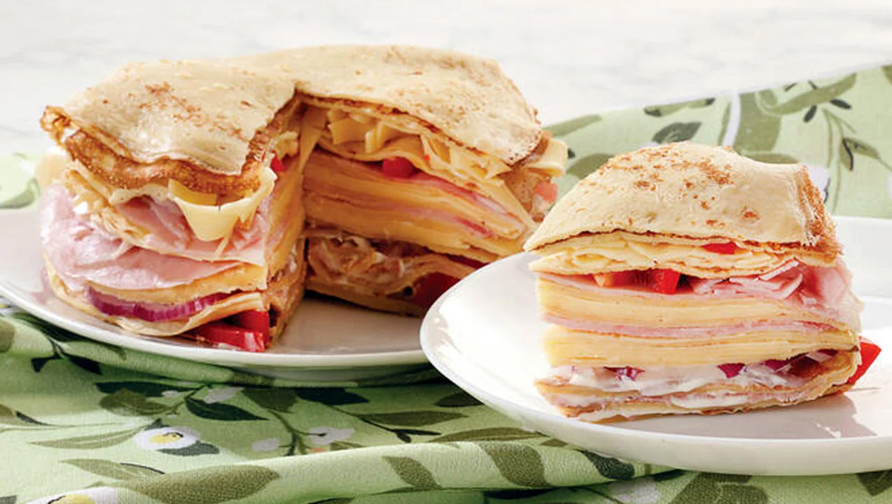Preparada con panqueques o crepes, esta receta de aires europeos se ajusta a las necesidades del bolsillo y el paladar argentinos. Dotada de una frescura y el sabor que le confieren los fiambres y las verduras del relleno, es una excelente elección para servir en el verano austral.