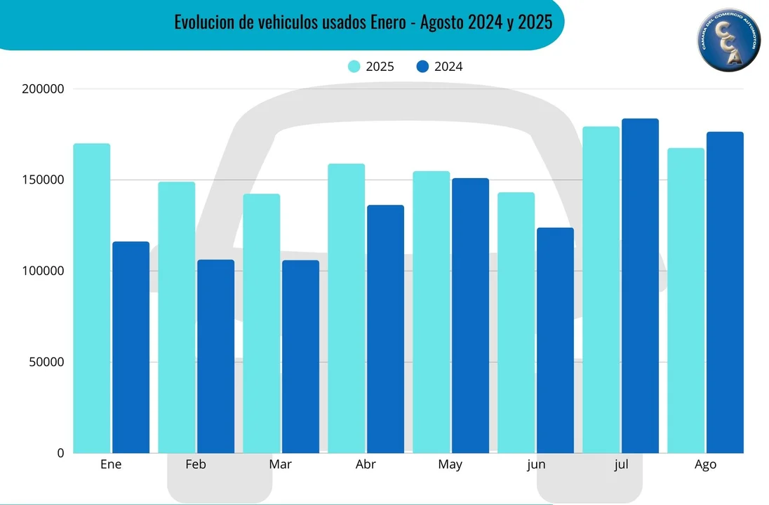 En el octavo mes del año, se comercializaron 167.525 vehículos usados, un 5,05% menos que en igual mes de 2024 (176.435 unidades).