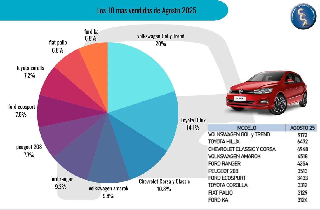 Agosto volvió a mostrar que el Volkswagen Gol sigue encabezando la preferencia de la gente al adquirir un auto usado. Se comercializaron 9.172 unidades.