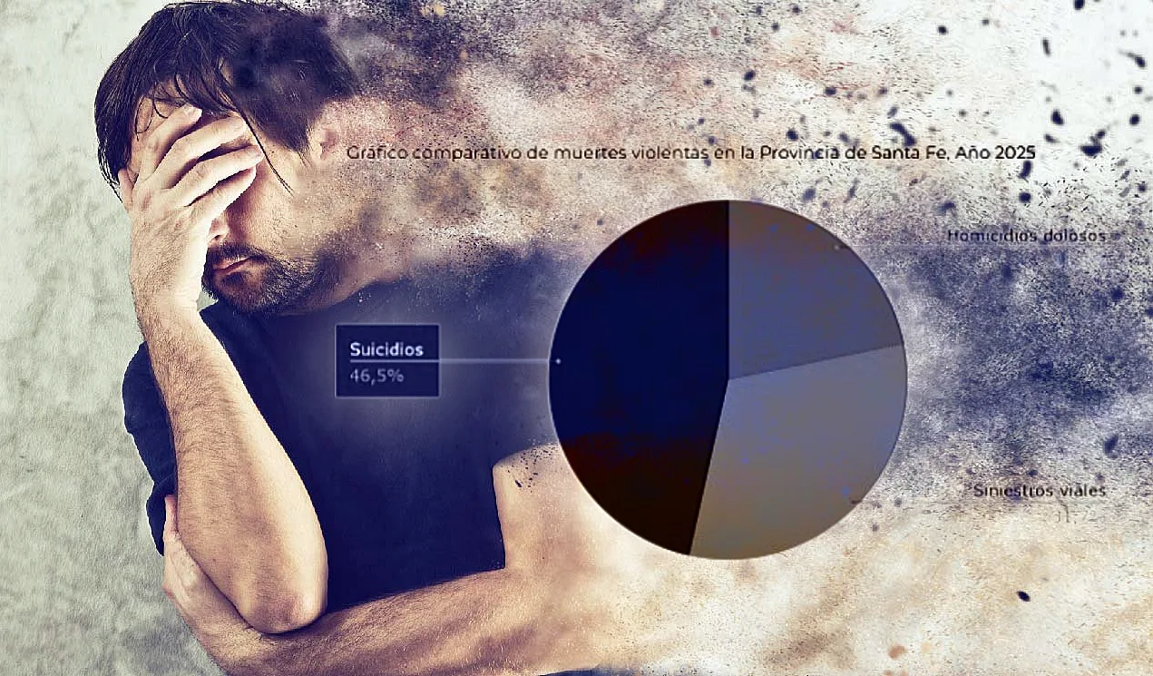 Durante 2025, en la provincia de Santa Fe se registraron 964 muertes violentas, de las cuales 448 corresponden a suicidios: nada menos que el 46,5% del total. La cifra supera ampliamente la cantidad de homicidios dolosos registrados en el mismo período (210, el 21,8% del total) y las muertes en accidentes de tránsito (306, el 31,7% del total).