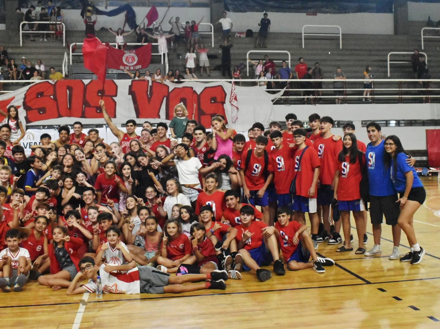 Los chicos de Servando Bayo y de la Academia Jump Shot estuvieron en el Bonilla mirando el partido y aprovecharon para fotografiarse en el festejo con los jugadores del rojo.